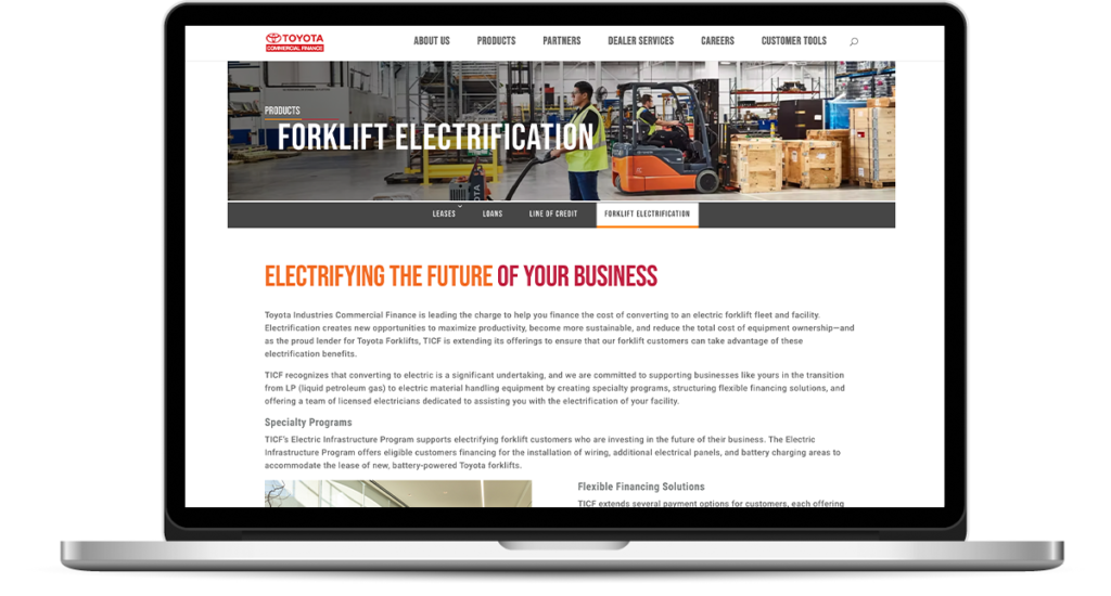 Each Toyota dealership location received brand new pieces of collateral promoting our various financial solutions for customers. Additionally, we launched a new page on our website that features videos detailing the benefits of each financial product TICF offers for customers. The videos and collateral are new tools you can use with customers to help them determine the right financing solution to fit their business needs.