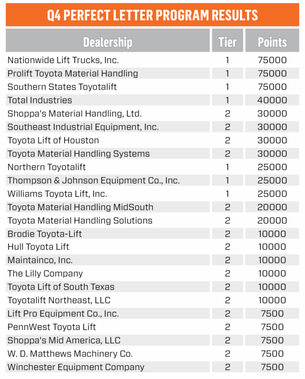 Q4 results are in! Dealer Group points have been issued and are available for claiming in the Elite Dealer Rewards system based on the chart below. Check it out to see where your Toyota Dealership* landed & how many points will be available to be claimed by the appropriate dealer personnel.